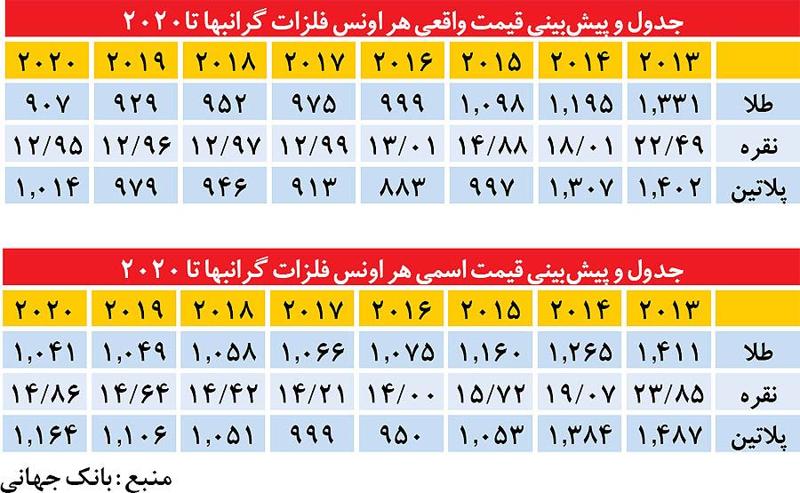 بانک جهانی در گزارش سه ماهه خود تحت عنوان « دورنمای بازار کالا »، برآورد خود را درباره قیمت فلزات گرانبها ارائه داد.