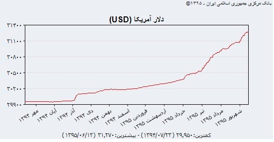 تغییرات نرخ دلار در مرکز مبادلات ارزی بیانگر نمودار صعودی آن در طول یکسال گذشته است، به طور ی با رشدی سریعتر از دوره های قبل از حدود ۲۹۰۰ به ۳۱۲۶ تومان افزایش یافته است. تغییر قیمت این ارز از شهریور تا اواخر آذرماه سال قبل آرام و کم نوسان بوده، اما در ادامه و تا خردادماه امسال با روند سریعتری به رشد خود ادامه داده است.
