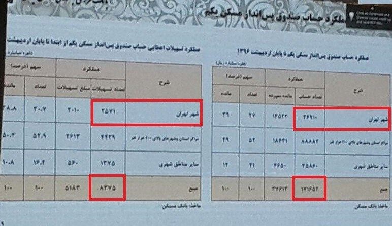آمار تعداد تسهیلات دریافت شده در شهر تهران مناسب تر بوده و بر این اساس از 46910 مورد ثبت نام در این صندوق در شهر تهران، 2571 فقره تسهیلات پرداخت شده است. به این ترتیب در شهر تهران نیز 5.4 درصد متقاضیان موفق به دریافت تسهیلات شدهاند.