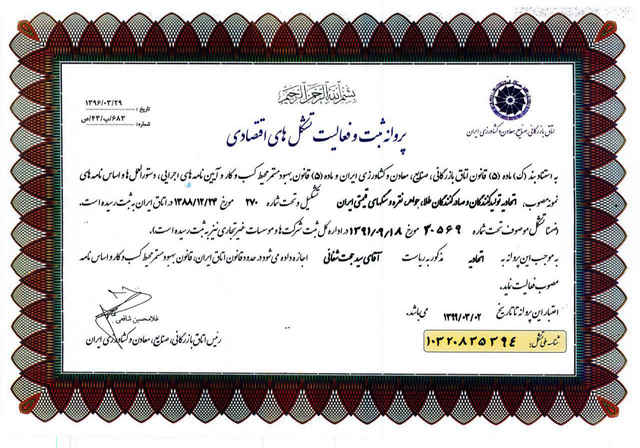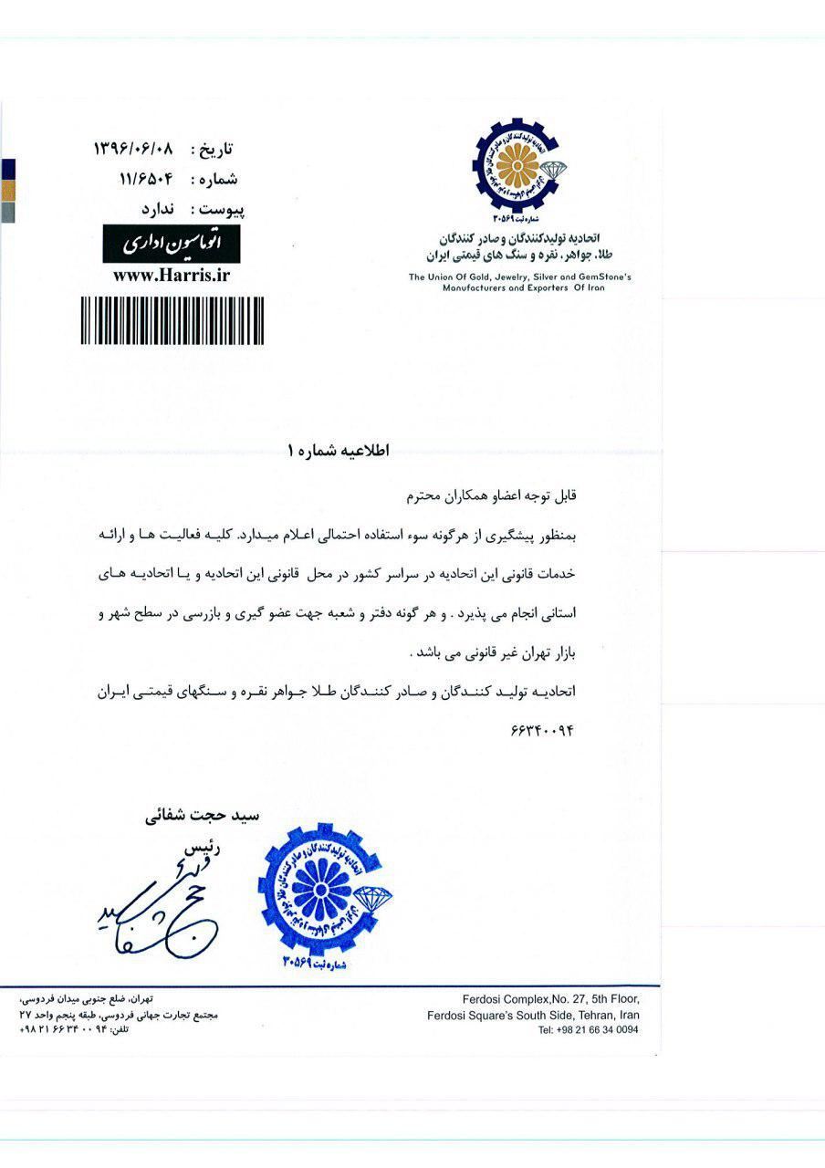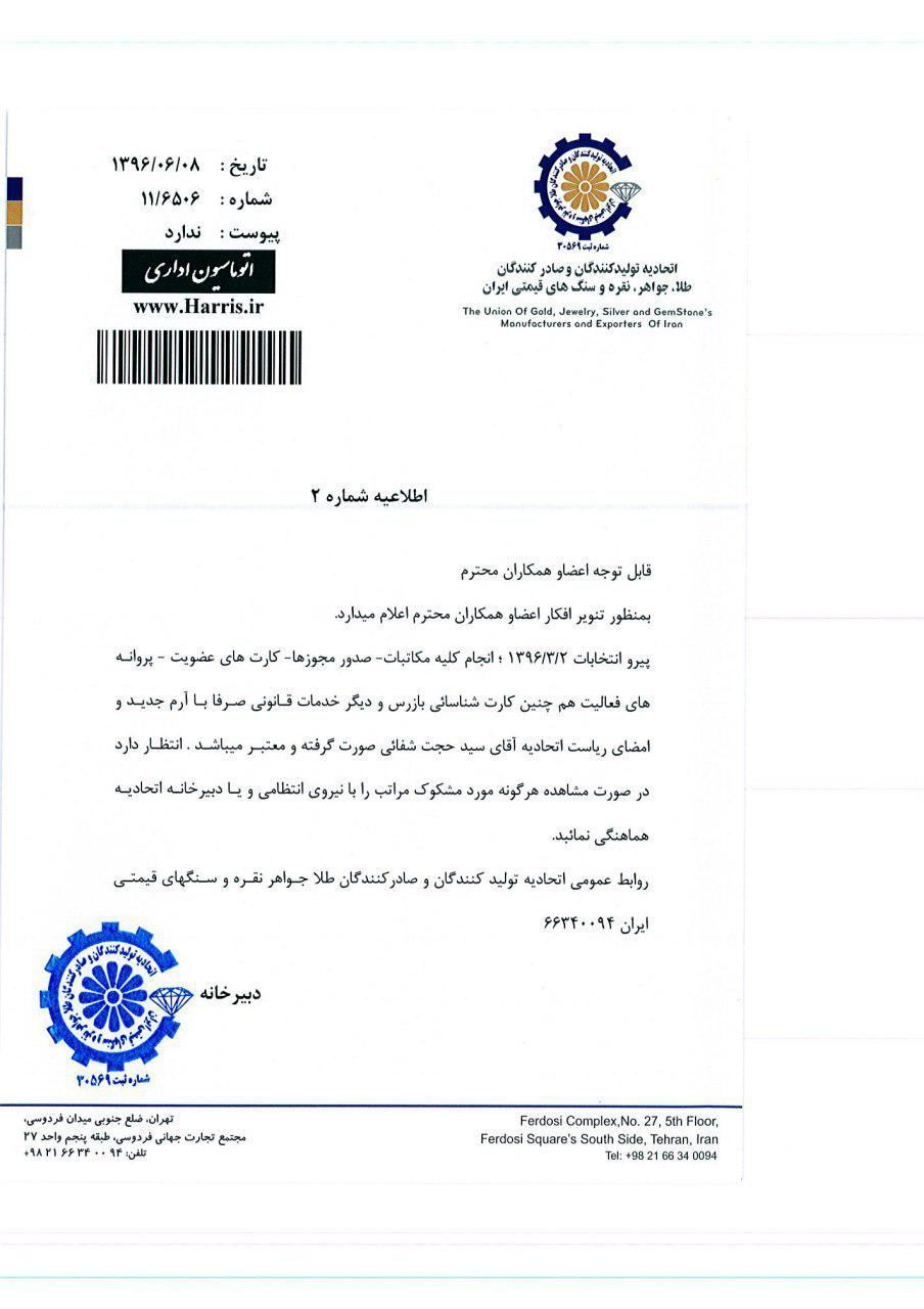 اطلاعیه های جدید اتحادیه تولیدکنندگان و صادرکنندگان طلا و جواهر