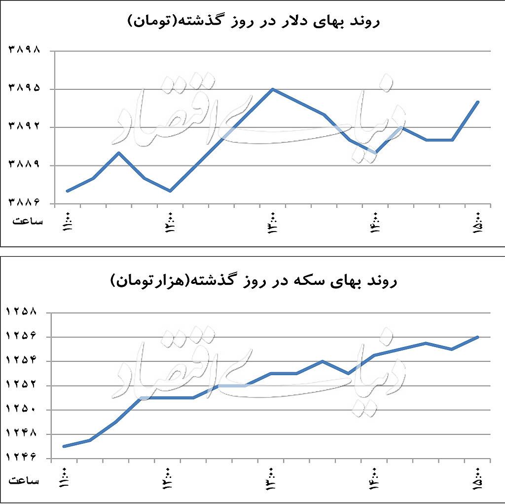 در دومین روز هفته، معامله‌گران بازار سکه و دلار موقعیت خرید را حفظ کردند تا قیمت‌ها رشد بیشتری را تجربه کنند. روز یکشنبه، شاخص بازار ارز با افزایش جزئی 3 تومانی به بهای 3 هزار و 894 تومان رسید. رشد محدود دلار در شرایطی رقم خورد که در بازار موازی، سکه تمام بهار آزادی افزایشی کانالی را تجربه کرد و از مرز روانی یک میلیون و 250 هزار تومان عبور کرد. در دوازدهمین روز شهریورماه، سکه 15 هزار تومان افزایش را به ثبت رساند و به قیمت یک میلیون و 256 هزار تومان رسید. البته سکه پس از ساعت 3 بعدازظهر رشد بیشتر را نیز به ثبت رسانده و در بازار غیررسمی قیمت‌های بالای یک میلیون و 260 هزار تومان را تجربه کرده بود. این فلز گرانبها در اولین روز هفته نیز 17 هزار تومان بالا رفت که بیشترین میزان رشد روزانه آن در سال 96 بود. به گفته فعالان، رشد بهای سکه در دومین روز هفته تا حد زیادی ناشی از خوش‌بینی معامله‌گران به روند بهای اونس در آغاز بازارهای جهانی بود. به باور آنها، آزمایش بمب هیدروژنی کره شمالی در آغاز بازارهای جهانی در روز دوشنبه اثرات خود را نشان خواهد داد و ناامنی‌های ناشی از آن تقاضا برای طلا را به‌عنوان سرمایه امن بالا خواهد برد.