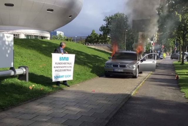 یک شهروند ایرانی – ایتالیایی به نشانه اعتراض به مشکلات نقص فنی و خدمات پس از فروش شرکت بی‌ام‌و، خودروی خود را به آتش کشید.