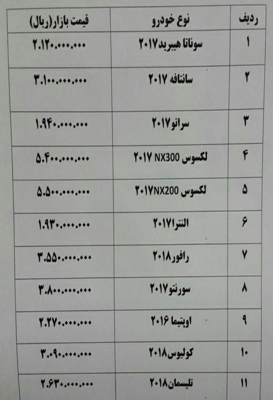 *قیمت تعدادی از خودروهای داخلی و وارداتی بهشرح زیر است: