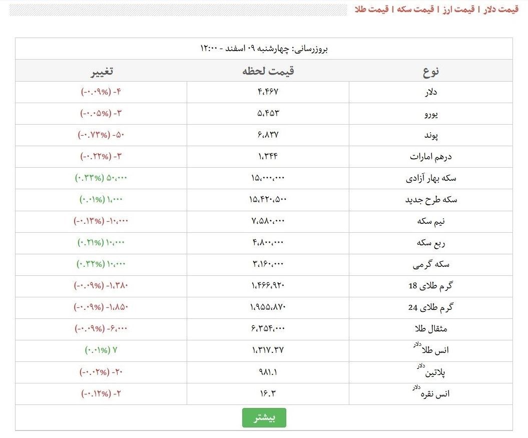 قیمت طلا، قیمت دلار، قیمت سکه و قیمت ارز امروز ۹۶/۱۲/۰۹