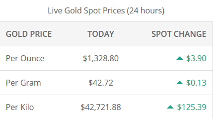 قیمت هر اونس طلا در بازارهای جهانی با افزایش سه دلار و ۹۰ سنتی به هزار و ۳۲۸ دلار و ۸۰ سنت رسید.