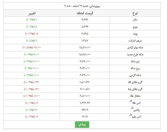 قیمت طلا، قیمت دلار، قیمت سکه و قیمت ارز امروز ۹۶/۱۲/۱۹