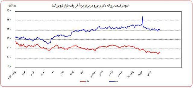 اما در بازار جهانی دلار در هفته گذشته با افزایش ارزش همراه بوده و در برابر اکثر ارزها تقویت شده است. براین اساس ارزش دلار در برابر ین ۱.۴۴، فرانک سوئیس ۰.۷۱ درصد تقویت شد و در مقابل ارزش یورو به ۰.۲۶ و پوند ۰.۸۲ درصد در برابر دلار تضعیف شده است. براساس تحلیلی که بانک مرکزی درباره تغییرات ارزش دلار منتشر کرده چهار عامل موجب تقویت این ارز در بازارهای جهانی شده است. بسته شدن موقعیتهای کسری دلار با توجه به نزدیک شدن به پایان فصل نخست سال جاری میلادی، کاهش تورم و افت شاخص مدیران خرید و انتظارات اقتصادی آلمان، افت برخی شاخصهای اقتصادی انگلیس و همچنین کاهش تقاضای ین و فرانک سوئیس به عنوان ارزهای امن در طی اعلام تمایل چین به مذاکره با آمریکا پیرامون تعرفههای تجاری عوامل تقویت دلار اعلام شده است.