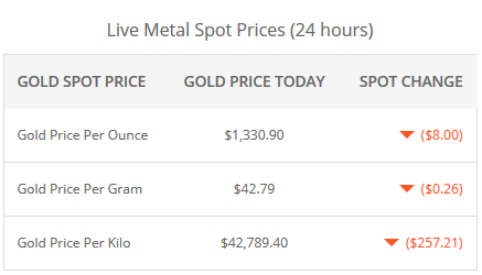 قیمت هر اونس طلا در بازارهای جهانی امروز –پنجشنبه- با کاهش قابل توجه هشت دلاری به یک هزار و ۳۳۰ دلار و ۹۰ سنت رسید.