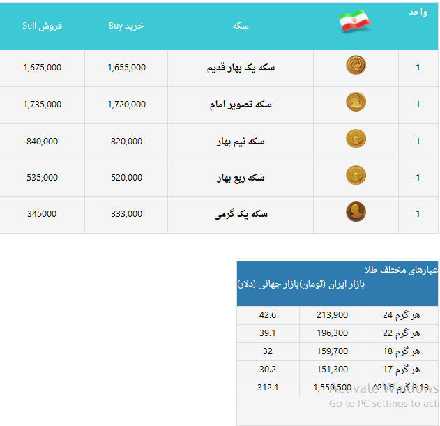 3. قیمت طلا و سکه در بازار روز پنج شنبه