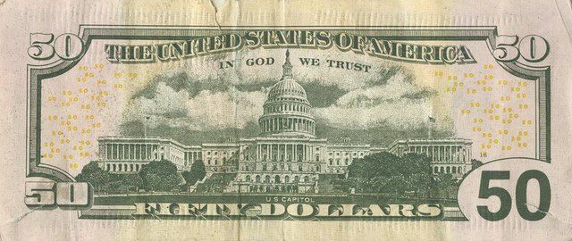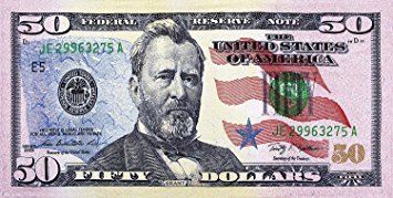 همچنین با نگه داشتن ۵۰ دلاری در مقابل نور، تصویر کم رنگ "گرانت" -رئیس جمهور اسبق آمریکا- در فضای خالی راست اسکناس نمایان میشود، تصویر از هر دو سمت اسکناس قابل مشاهده است. در عین حال که اگر کمی اسکناس را کج کنید، عدد ۵۰ در گوشه پایین سمت راست روی اسکناس از رنگ مسی به سبز تغییر میکند.