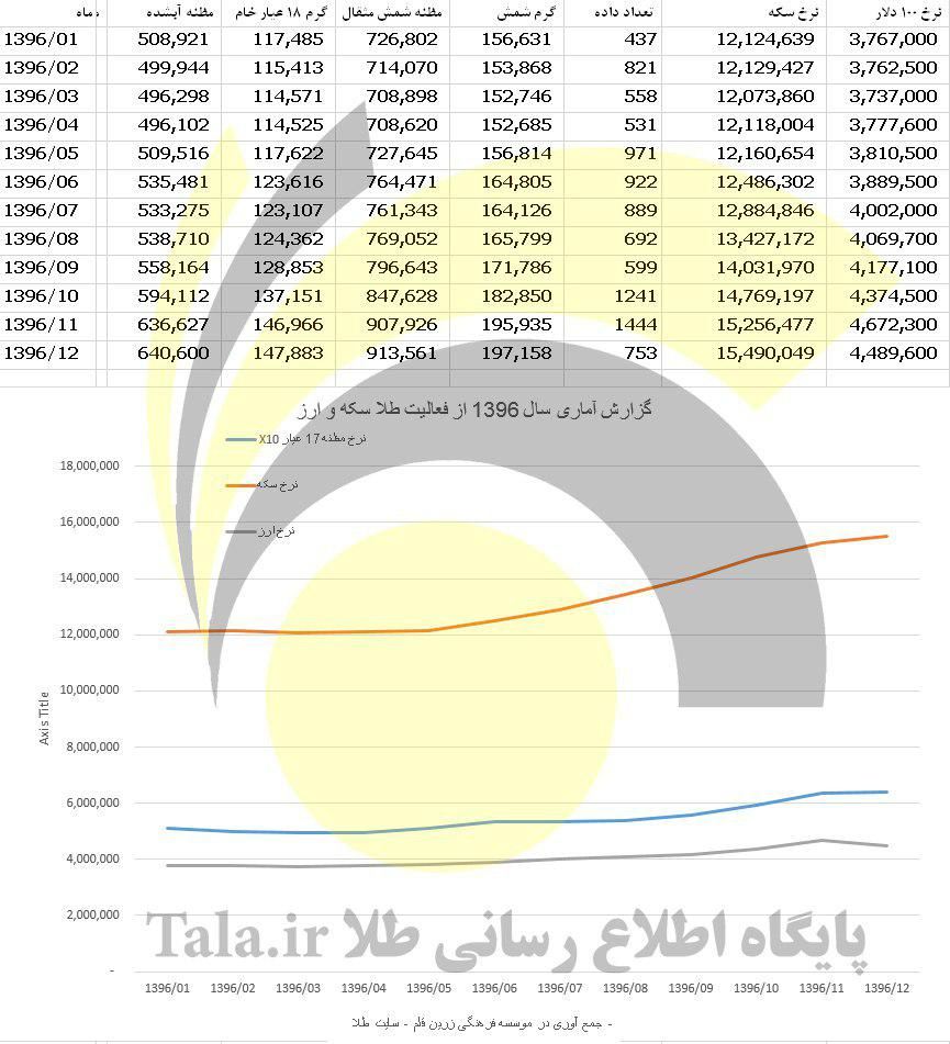 گزارش آماری سال 96 سایت طلا از قیمت های طلا ، سکه و ارز