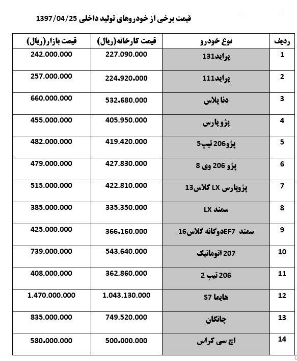 قیمت خودرو در بازار امروز بهشرح زیر است: