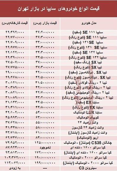 3. قیمت انواع خودروهای سایپا در بازار تهران + جدول