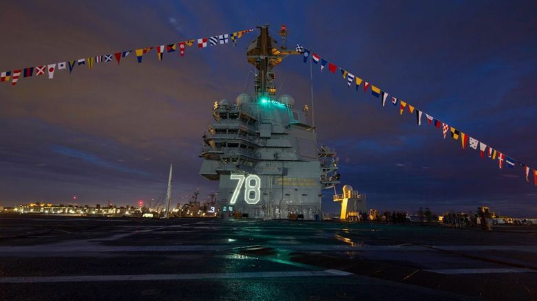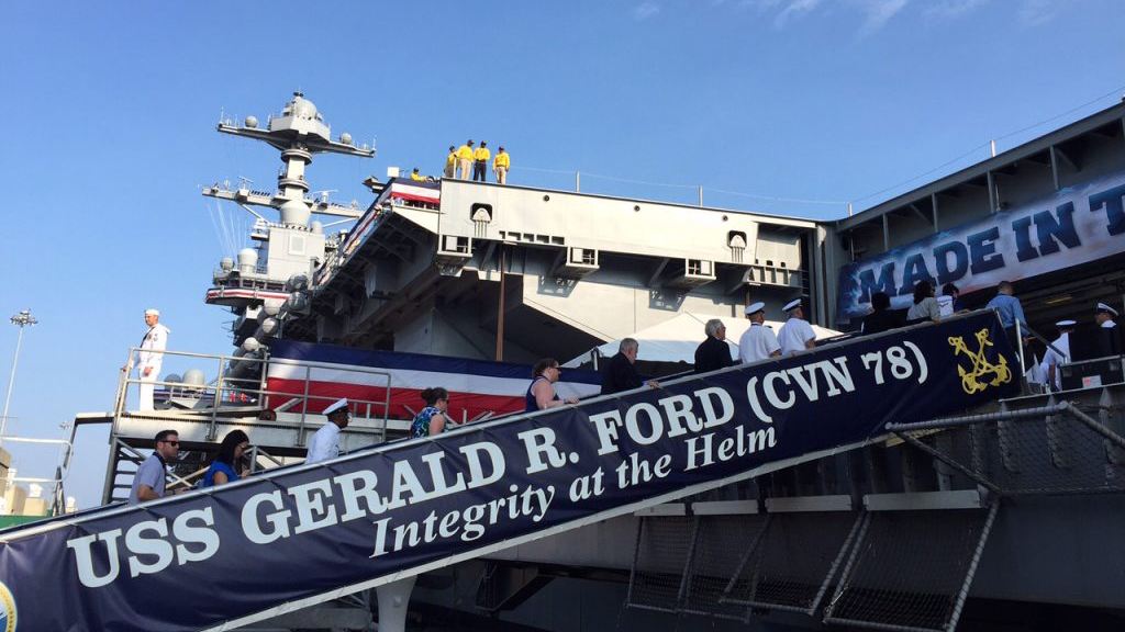 مراسم ویژه با حضور مقامات دولتی آمریکا، پرسنل نیروی دریایی و خانواده آنها برگزار شد همچنین پیمانکاران و مهمان به همراه کاپیتان «ریچارد مککورمک» فرمانده اول ناو حضور داشتند. اسپانسر اصلی ساخت این ناو عظیم الجثه «سوزان فورد بالز» دختر «جرالد فورد» سی و هشتمین رئیس جمهور آمریکا بود.