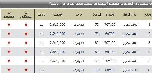 افزایش قیمت کاغذ در بازار طی روزهای گذشته هر بند کاغذ تحریر ۷۰ گرمی را به بندی ۲۶۱ هزار تومان رسانید. این در حالی است که طیق برآوردهای کارگروه کاغذ قیمت هر بند کاغذ باید نهایت ۱۳۰ هزار تومان باشد.