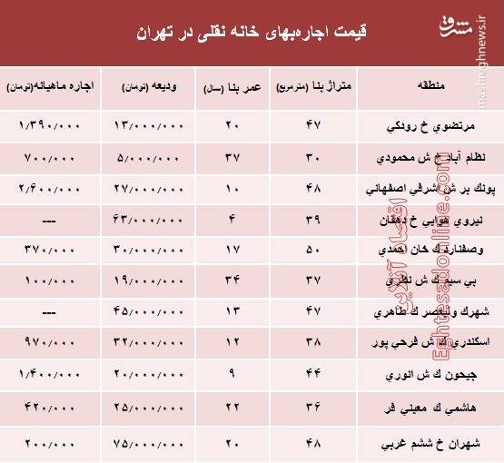 جدول/ قیمت اجاره‌بهای خانه نقلی در تهران