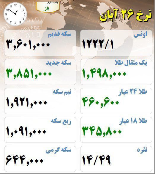 تاریخ: ۲۶/آبان/۹۷ ساعت ۱۲:۵۰ | اقتصاد ایران شناسه خبر: ۴۸۸۴۲ منبع: سایت طلا