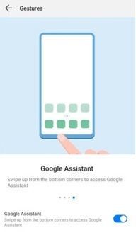 وقتی حرکات اشاره را در رابط جدید کاربری فعال کنید، علاوه بر تمام آن حرکتها، شما میتوانید دستیار هوشمند گوگل (Google Assistant) را با کشیدن از هر یک از گوشههای پایین صفحه به سمت بالا فرا بخوانید.