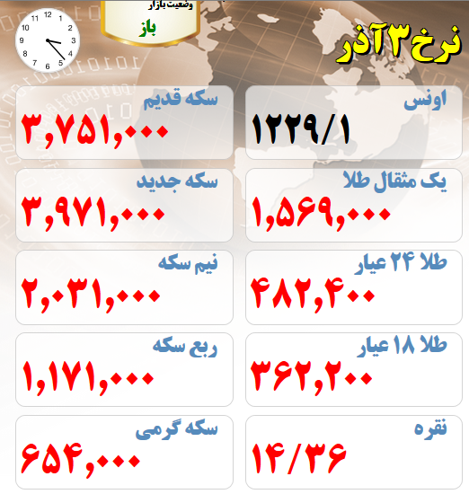 قیمت های بازار طلا و سکه امروز شنبه سوم آذر ماه