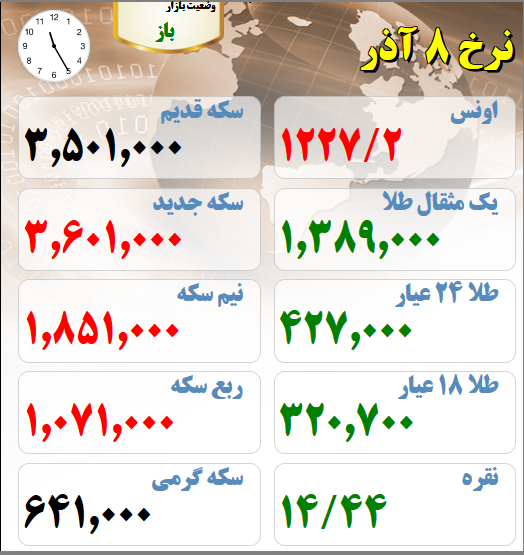 قیمت های بازار طلا و سکه امروز 8 آذرماه :