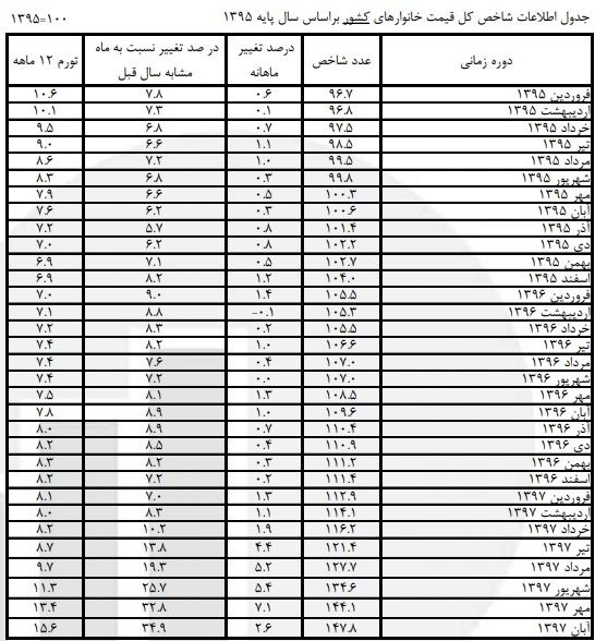 بررسی روند تغییرات نرخ تورم در فاصله فروردین ماه ۱۳۹۵ تا آبان ماه امسال نشان می دهد که پس از یک دوره کاهش نرخ ها تا ۶.۹ درصد، نرخ تورم دوباره در روند صعودی قرار گرفته و تا ۱۵.۶ درصد افزایش یافته است.