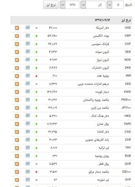 قیمت روز ارزهای دولتی ۹۷/۰۹/۱۲|مدار ۲۵ ارز افزایشی شد