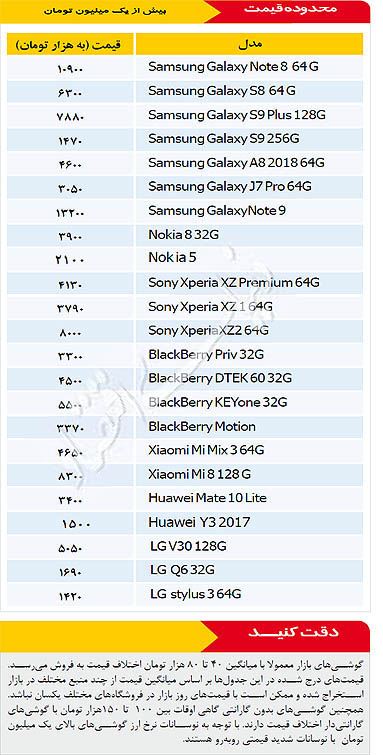 قیمت روز موبایل - ۱۳۹۷/۰۹/۱۸ تاریخ: ۱۸/آذر/۹۷ ساعت ۱۳:۵۵ | فن آوری شناسه خبر: ۴۹۳۹۱ منبع: دنیای اقتصاد خبر را برای من بخوان