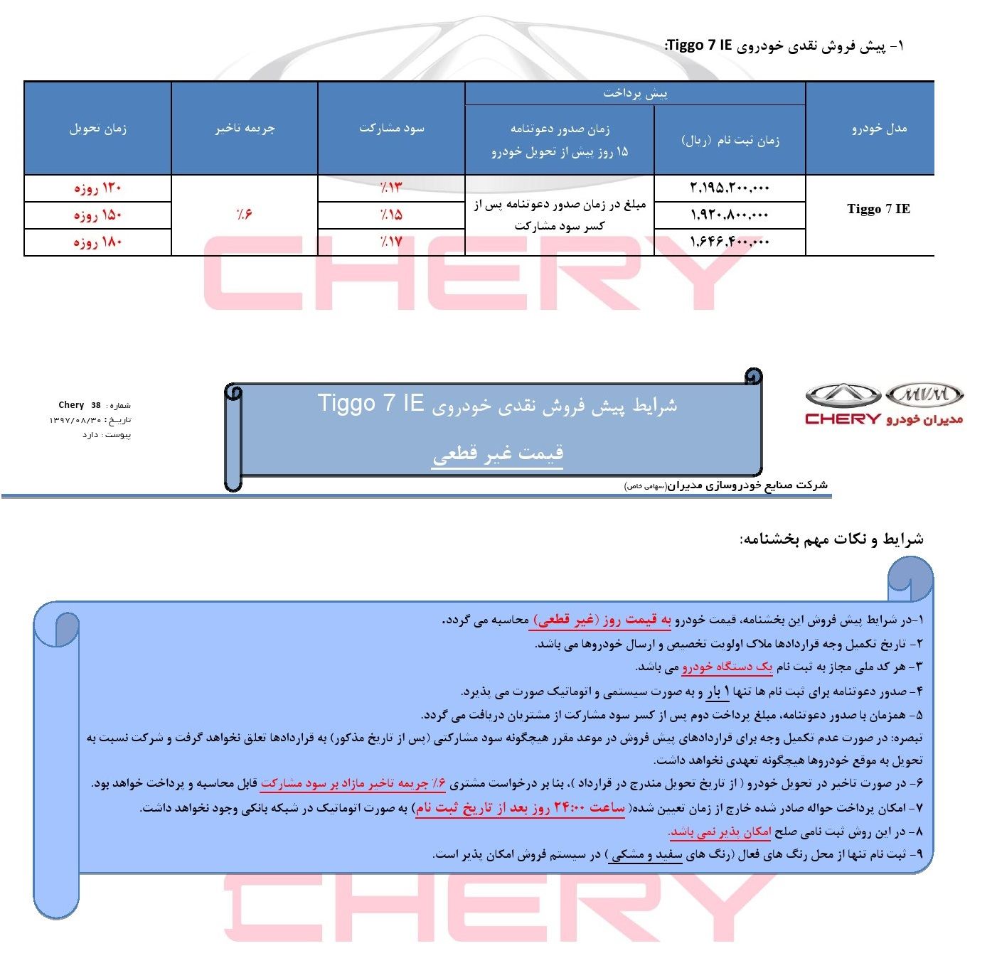 شرکت مدیران خودرو از پیش فروش مرحله دوم تیگو۷ جدید به عنوان لوکس ترین محصول خود از روز دوشنبه ۱۹ آذرماه جاری خبر داد.