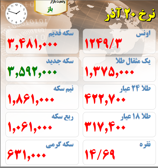 قیمت های بازار طلا و سکه نیمروز 20 آذر ماه کاهش ادامه دار قیمت های بازار طلا و سکه تاریخ: ۲۰/آذر/۹۷ ساعت ۱۳:۵۴ | اقتصاد ایران شناسه خبر: ۴۹۴۷۵ منبع: سایت طلا خبر را برای من بخوان قیمت های بازار طلا و سکه نیمروز 20 آذر ماه : (لحظه تنظیم خبر)