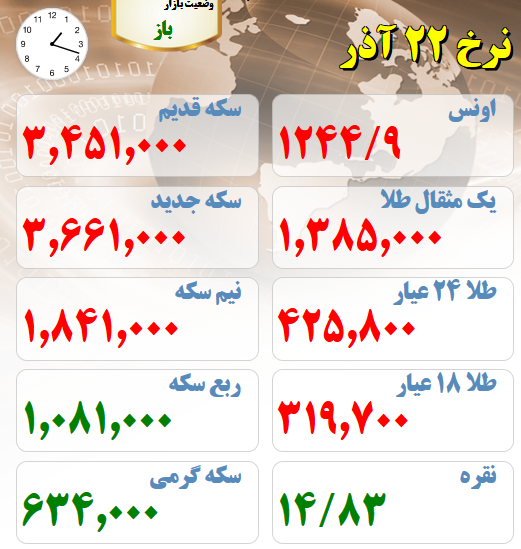 قیمت های بازار طلا و سکه نیمروز 22 آذر ماه کاهش ادامه دار قیمت های بازار طلا و سکه تاریخ: ۲۲/آذر/۹۷ ساعت ۱۳:۲۰ | اقتصاد ایران شناسه خبر: ۴۹۵۴۵ منبع: سایت طلا خبر را برای من بخوان قیمت های بازار طلا و سکه نیمروز 22 آذر ماه : (لحظه تنظیم خبر)