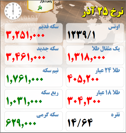 3. آخرین قیمت های بازار طلا و سکه25 آذر ماه