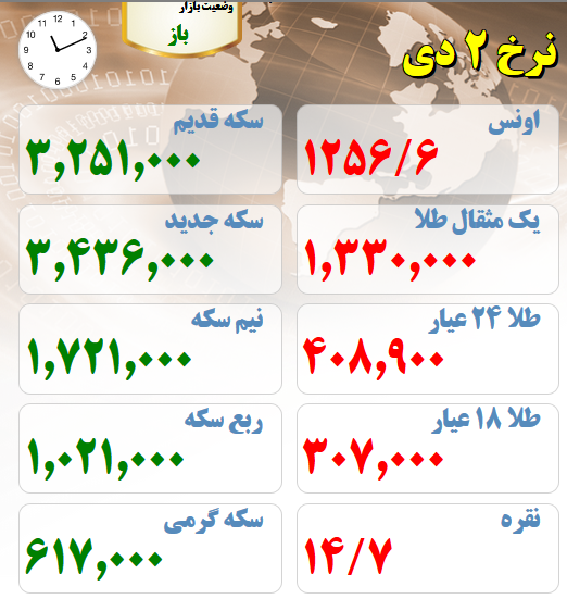 قیمت بازار طلا و سکه امروز 2 دیماه :