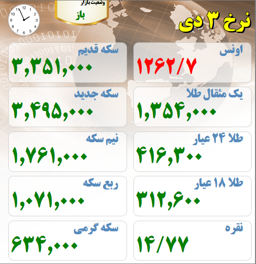 قیمت های بازار طلا و سکه نیمروز سوم دیماه افزایش نسبی قیمت ها در بازار طلا و سکه تاریخ: ۳/دي/۹۷ ساعت ۱۴:۰۳ | اقتصاد ایران شناسه خبر: ۴۹۸۱۹ منبع: سایت طلا خبر را برای من بخوان قیمت های بازار طلا و سکه نیمروز سوم دیماه : (لحظه تنظیم خبر) برچسب ها : گرم 18 عیار قیمت طلا قیمت سکه طلا و سکه سکه گرمی