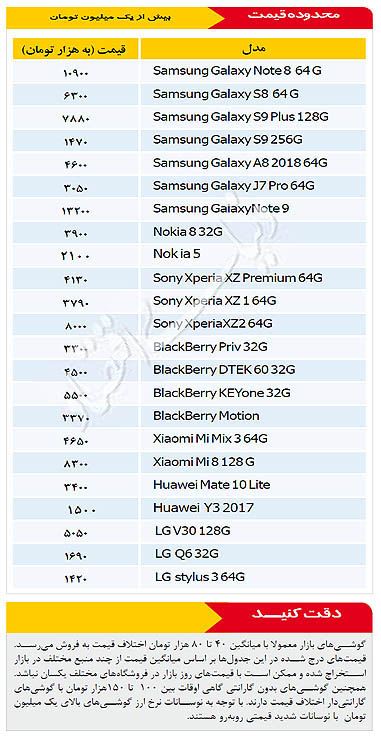 قیمت روز موبایل - ۱۳۹۷/۱۰/۰۳