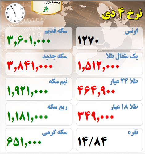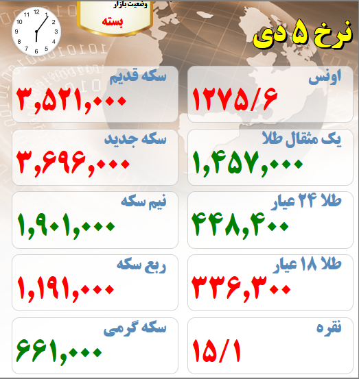 آخرین قیمت های بازار طلا و سکه پنجم دیماه :