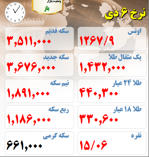 قیمت های بازار طلا و سکه امروز ششم دیماه قیمت طلا و سکه در بازار تهران تاریخ: ۶/دي/۹۷ ساعت ۱۱:۰۱ | اقتصاد ایران شناسه خبر: ۴۹۹۰۲ منبع: سایت طلا خبر را برای من بخوان قیمت های بازار طلا و سکه امروز ششم دیماه : (لحظه تنظیم خبر) برچسب ها : نیم سکه قیمت سکه قیمت طلا سکه گرمی ربع سکه