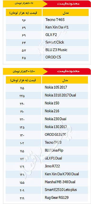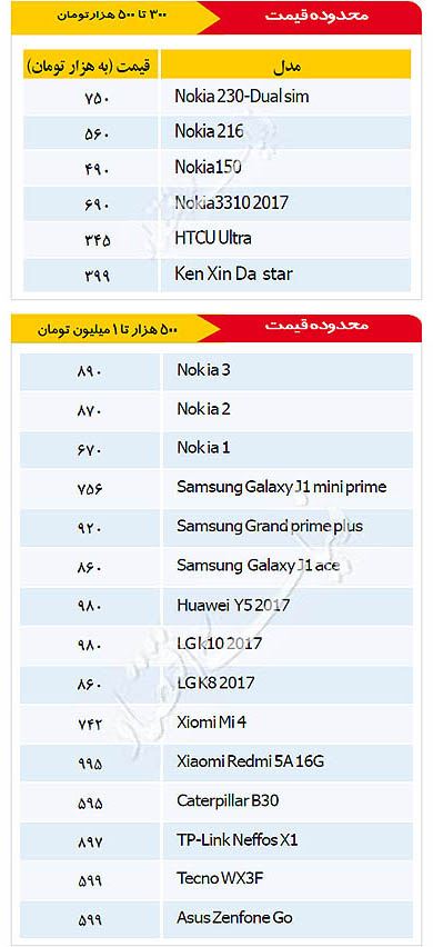 قیمت روز موبایل - ۱۳۹۷/۱۰/۰۸