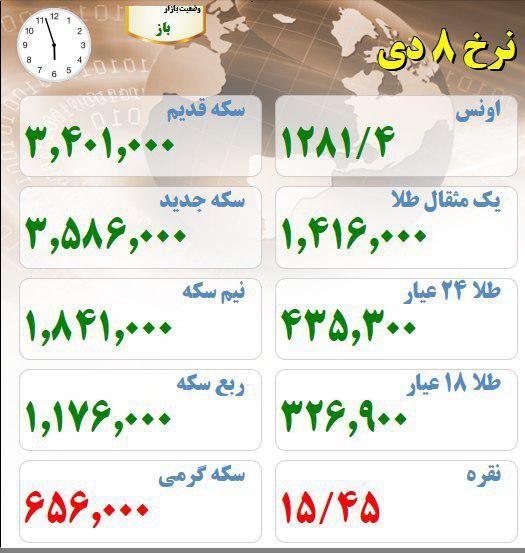 آخرین قیمت های بازار طلا و سکه هشتم دیماه تاریخ: ۸/دي/۹۷ ساعت ۱۸:۰۰ | اقتصاد ایران شناسه خبر: ۴۹۹۴۸ منبع: سایت طلا خبر را برای من بخوان آخرین قیمت های بازار طلا و سکه هشتم دیماه : (لحظه تنظیم خبر) برچسب ها : نیم سکه قیمت طلا قیمت سکه ربع سکه