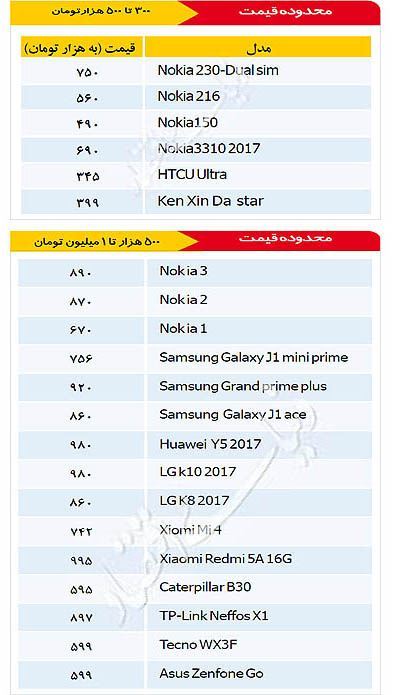 قیمت روز موبایل - ۱۳۹۷/۱۰/۰۹