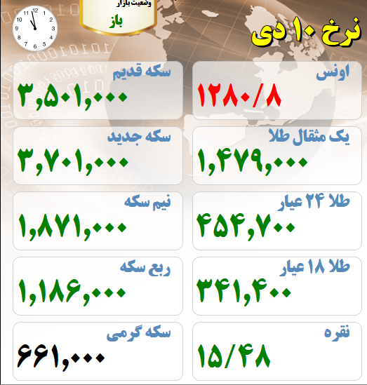 قیمت های بازار طلا و سکه امروز دهم دیماه :
