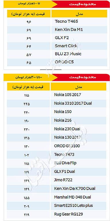 قیمت روز موبایل - ۱۳۹۷/۱۰/۱۱