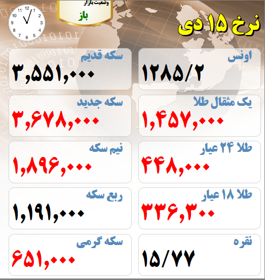 3. قیمت های بازار طلا و سکه امروز پانزدهم دیماه