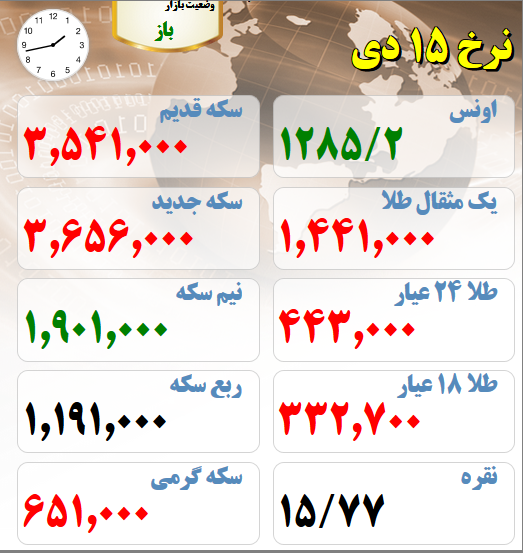 قیمت های بازار طلا و سکه نیمروز پانزدهم دیماه قیمت طلا و سکه در بازار تهران تاریخ: ۱۵/دي/۹۷ ساعت ۱۳:۴۶ | اقتصاد ایران شناسه خبر: ۵۰۱۲۲ منبع: سایت طلا خبر را برای من بخوان قیمت های بازار طلا و سکه نیمروز پانزدهم دیماه : (لحظه تنظیم خبر) برچسب ها : قیمت طلا قیمت سکه طلا سکه گرمی ربع سکه نیم سکه گرم 18 عیار
