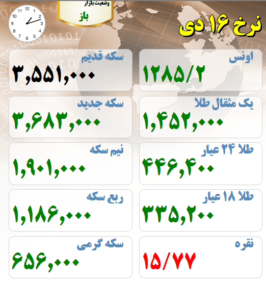 قیمت های بازار طلا و سکه نیمروز شانزدهم دیماه افزایش قیمت طلا و سکه در بازار تهران تاریخ: ۱۶/دي/۹۷ ساعت ۱۳:۱۵ | اقتصاد ایران شناسه خبر: ۵۰۱۶۰ منبع: سایت طلا خبر را برای من بخوان قیمت های بازار طلا و سکه نیمروز شانزدهم دیماه : (لحظه تنظیم خبر) برچسب ها : هر گرم 24 عیار قیمت نیم سکه قیمت هر گرم طلای 18 عیار قیمت سکه بهار آزادی قیمت سکه امامی قیمت سکه ربع سکه