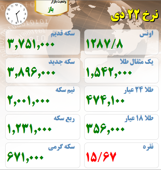 قیمت های بازار طلا و سکه نیمروز بیست و دوم دیماه افزایش قیمت طلا و سکه در بازار تهران تاریخ: ۲۲/دي/۹۷ ساعت ۱۳:۳۱ | اقتصاد ایران شناسه خبر: ۵۰۳۴۱ منبع: سایت طلا خبر را برای من بخوان قیمت های بازار طلا و سکه نیمروز بیست و دوم دیماه : (لحظه تنظیم خبر) برچسب ها : قیمت هرگرم طلا قیمت طلا قیمت سکه طلا و سکه ربع سکه نیم سکه هرگرم طلا 18 عیار