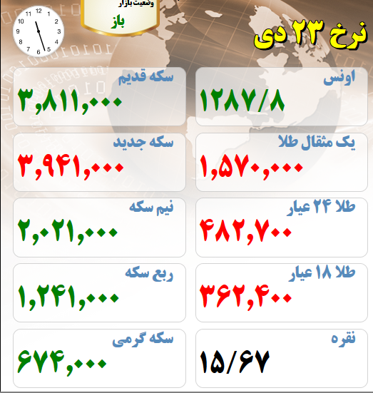 قیمت های بازار طلا و سکه امروز بیست و سوم دیماه :