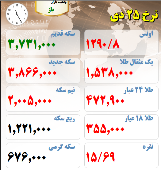 قیمت های بازار طلا و سکه امروز بیست و پنجم دیماه قیمت طلا و سکه در بازار تهران تاریخ: ۲۵/دي/۹۷ ساعت ۱۱:۲۷ | اقتصاد ایران شناسه خبر: ۵۰۴۳۴ منبع: سایت طلا خبر را برای من بخوان قیمت های بازار طلا و سکه امروز بیست و پنجم دیماه : (لحظه تنظیم خبر) برچسب ها : قیمت طلا قیمت سکه طلا و سکه