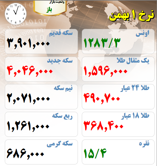 قیمت های بازار طلا و سکه امروز اول بهمن ماه :