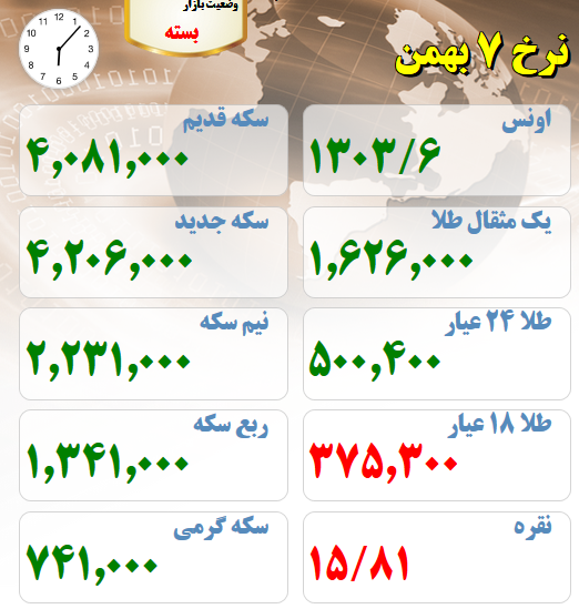 آخرین قیمت های بازار طلا و سکه هفتم بهمن ماه | آبشده 1 میلیون و 624 هزار تومان قیمت های طلا و سکه در بازار تهران تاریخ: ۷/بهمن/۹۷ ساعت ۱۸:۱۰ | اقتصاد ایران شناسه خبر: ۵۰۸۳۱ منبع: سایت طلا خبر را برای من بخوان آخرین قیمت های بازار طلا و سکه هفتم بهمن ماه : (لحظه تنظیم خبر) برچسب ها : نیم سکه مظنه طلا قیمت سکه قمیت طلا طلا و سکه سکه گرمی ربع سکه آبشده طلا هر گرم طلا 18 عیار
