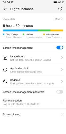 از آنجا که این روزها بسیاری از کاربران گوشیهای هوشمند در حالت عادی احساس میکنند مجبورند که از گوشیشان استفاده کنند، در EMUI 9.0 گزینههایی برای محدود کردن کاربران در نظر گرفته شده است. به این ترتیب که کاربر میتواند مدتزمان استفاده از کل گوشی یا بعضی اپلیکیشنها را محدود کند. البته اگر این قابلیت را فعال کنید، عملکردهای اساسی گوشی مانند تماس تلفنی و پیامک، در حالتی که استفاده از گوشی محدود شده، متوقف نخواهد شد.